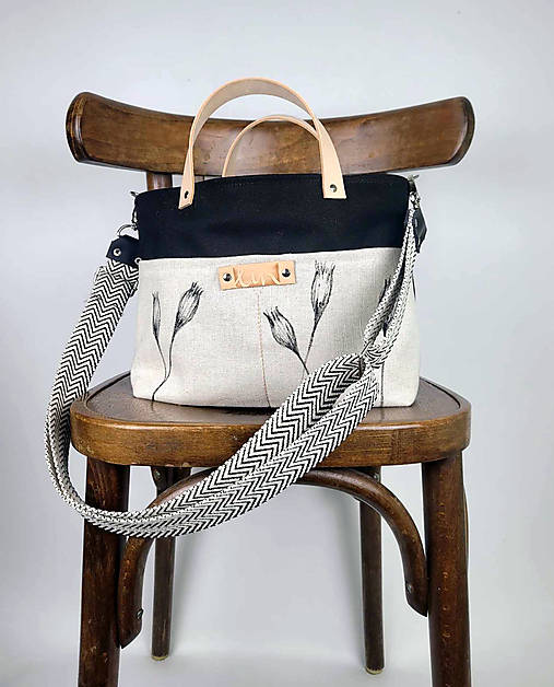Kabelka malá (bavlna, ľan, koža) MAKOVICE