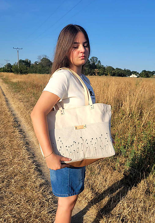 Taška veľká (bavlna, ľan, koža) LÚKA